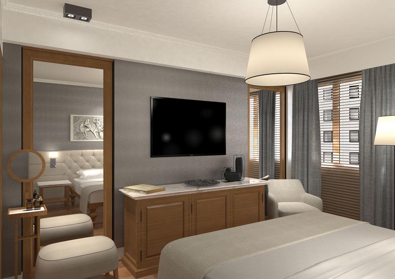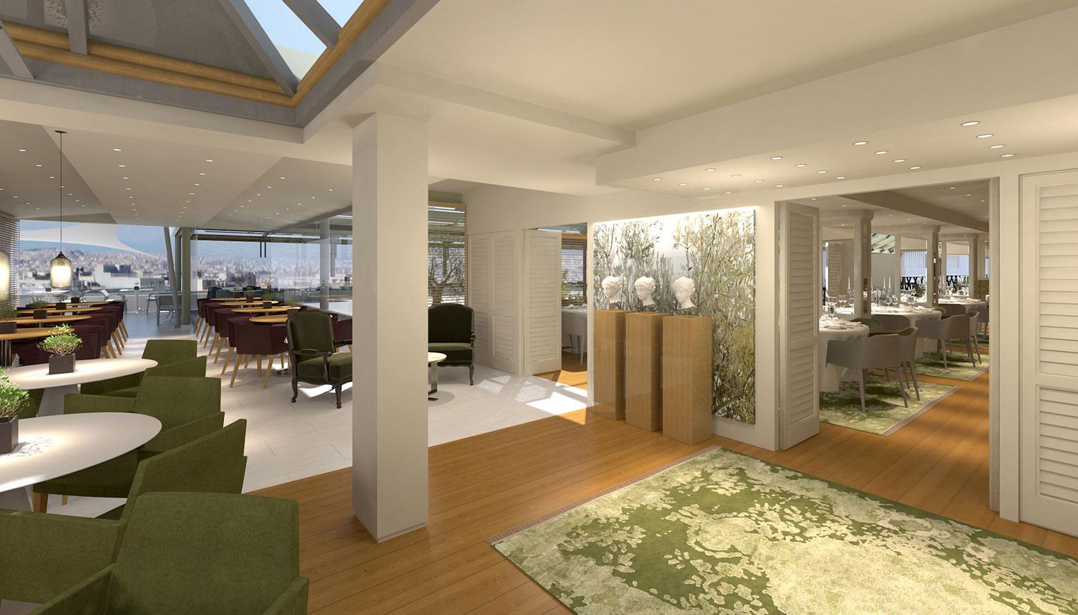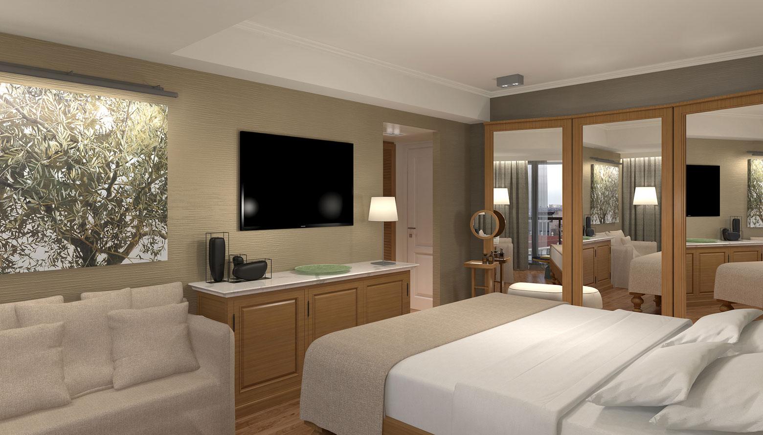 To 2016 συναντηθήκαμε με την Πρόεδρο του Διοικητικού Συμβουλίου του ξενοδοχείου Τιτάνια, κ. Ειρήνη Μαλάμου και την ομάδα της. Μας κέρδισε κατευθείαν με την αύρα και τον τρόπο της! Πολύ γρήγορα συμφωνήσαμε τη μετασκευή του Olive Garden, του roof garden εστιατορίου του ξενοδοχείου. Στην συνέχεια μας ανέθεσε το σχεδιασμό για την ανακαίνιση 130 δωματίων και 6 executive σουιτών του ξενοδοχείου.