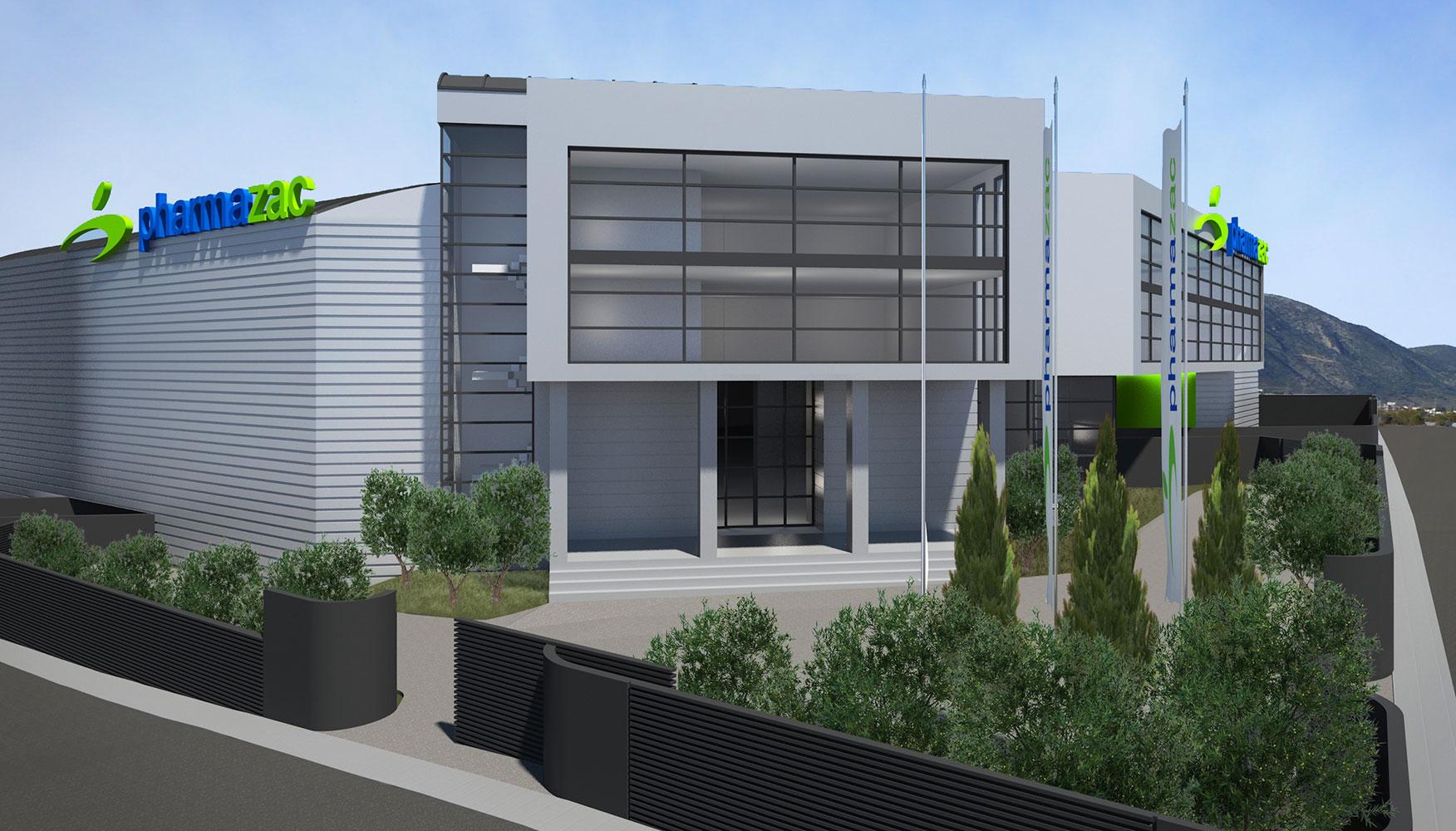 Σχεδιάσαμε το εργοστάσιο της Pharmazac το 2016. Συμμετείχαμε σε μια μεγάλη ομάδα διαφορετικών ειδικοτήτων μηχανικών, έχοντας στην δική μας ευθύνη, την γενικότερη λειτουργία και την αισθητική του κτιρίου. Για τις γραμμές παραγωγής, την υποδοχή πρώτων υλών και την αποθήκευση των έτοιμων φαρμάκων, συνεργαστήκαμε με τους ειδικούς μηχανολόγους παραγωγής και σχεδιάσαμε όλη την διάταξη του εργοστασίου βάσει πολύ συγκεκριμένων προδιαγραφών και διαγραμμάτων.