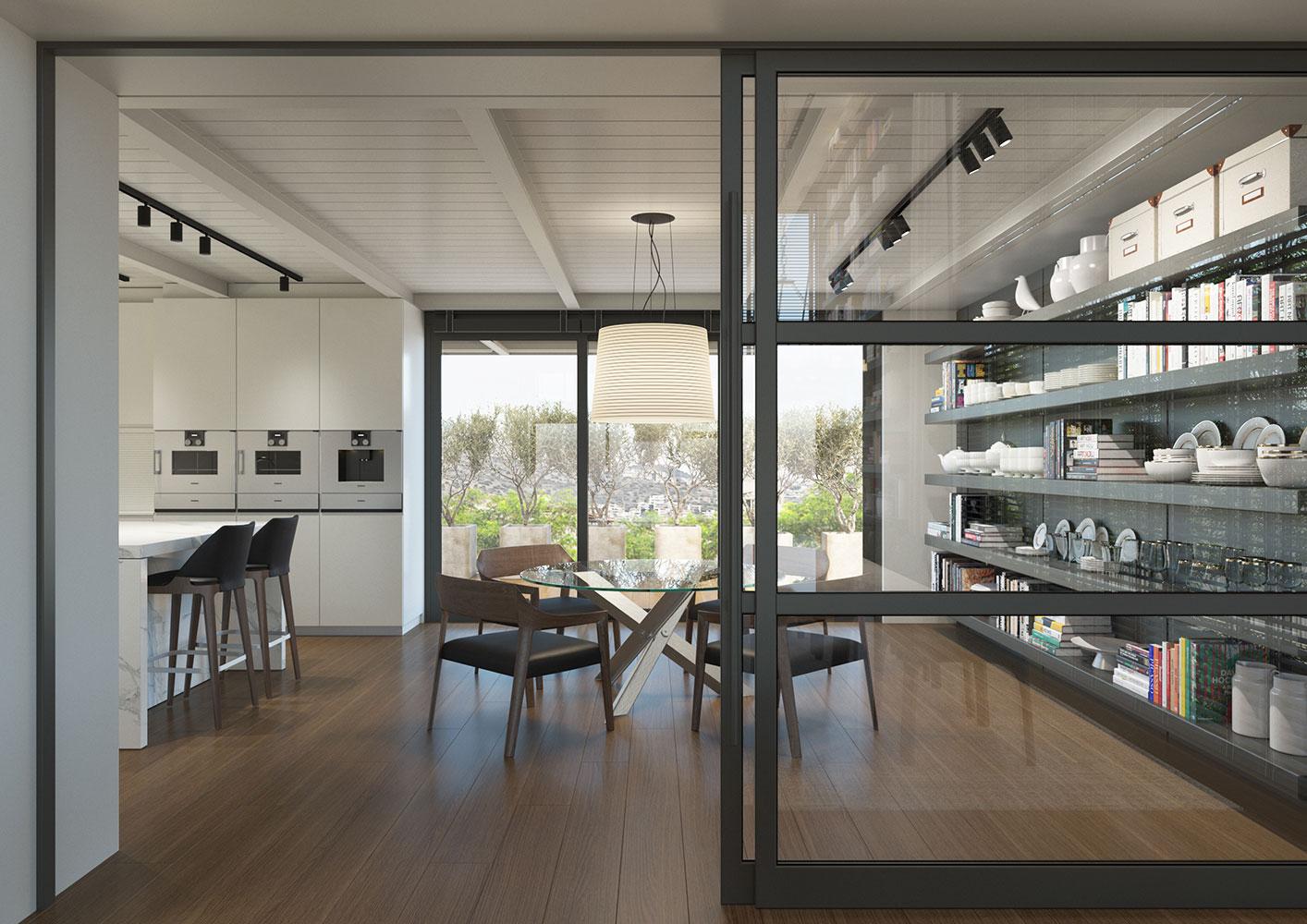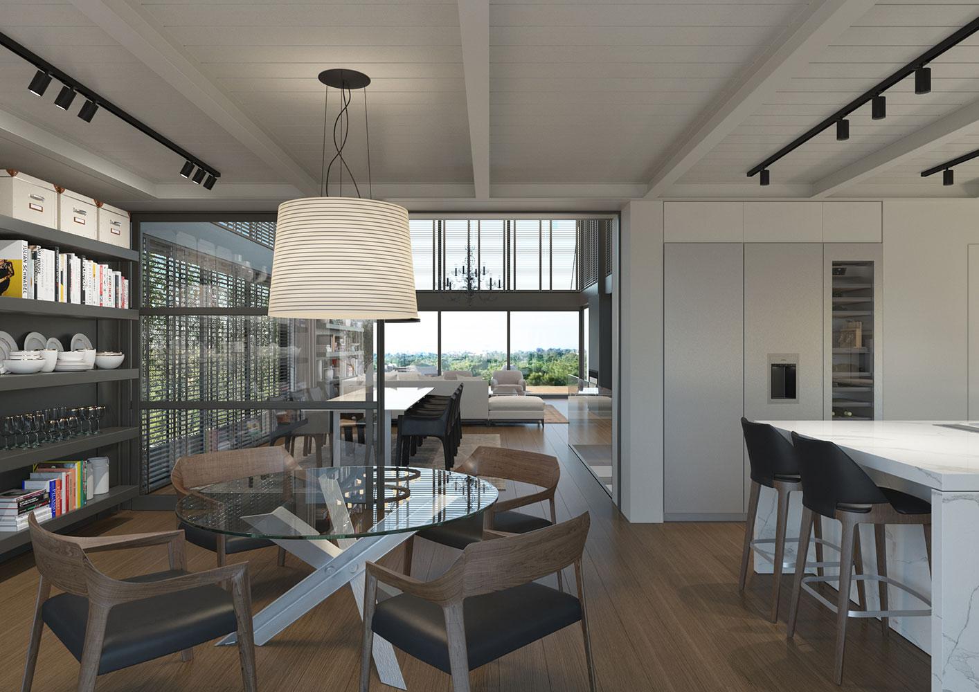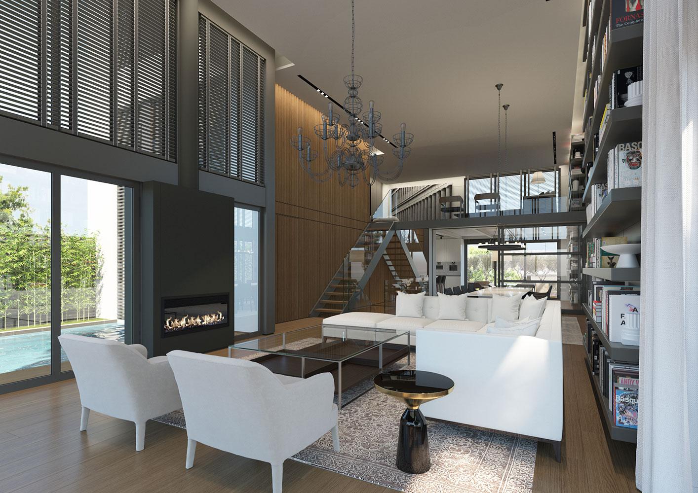 Το κτίριο που σχεδιάσαμε αποτελείται από μια ισόγεια μεζονέτα, ένα οροφοδιαμέρισμα και τη μεζονέτα της ιδιοκτήτριας, με μοναδική θέα στο Golf της Γλυφάδας και τη θάλασσα.