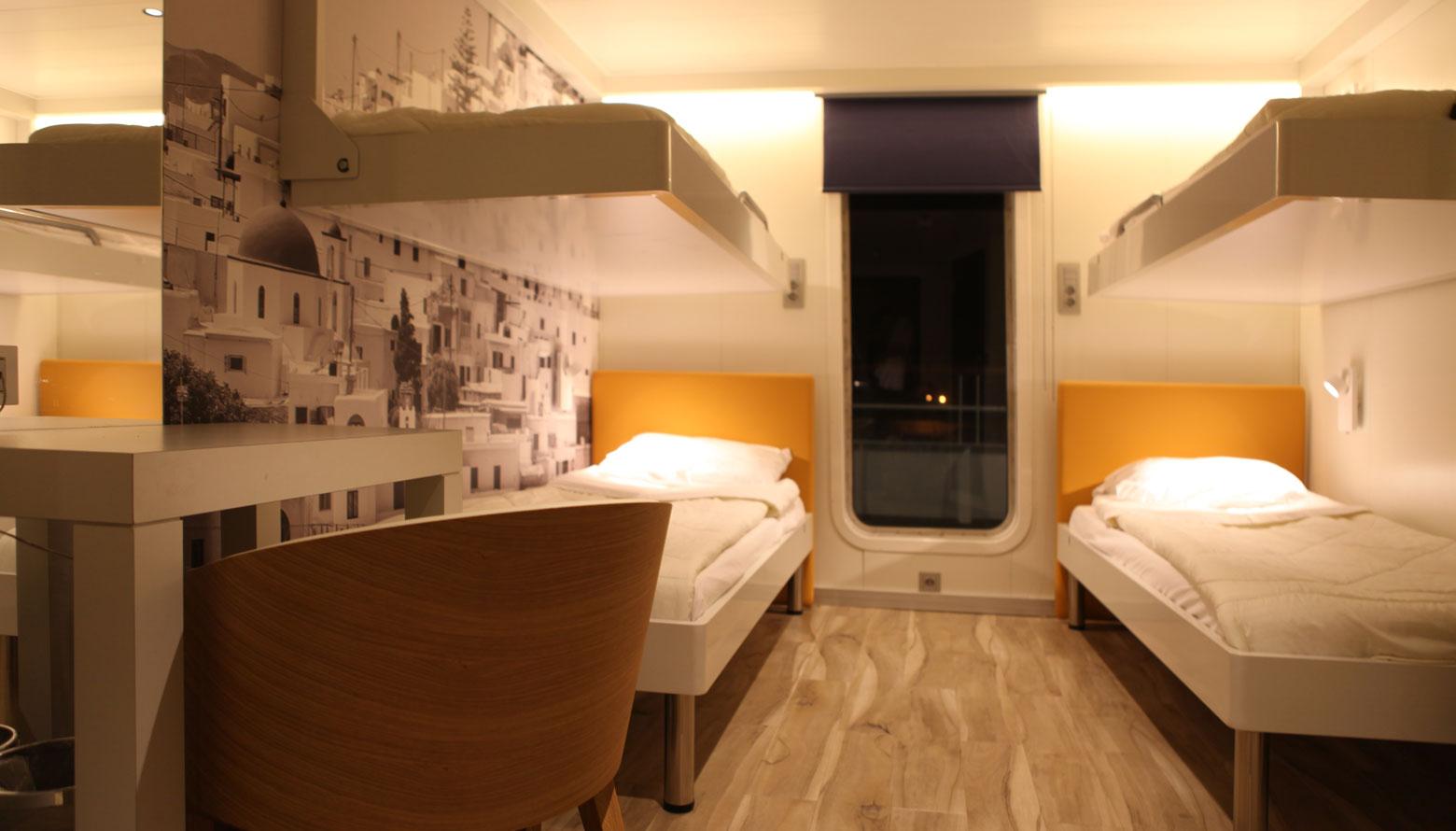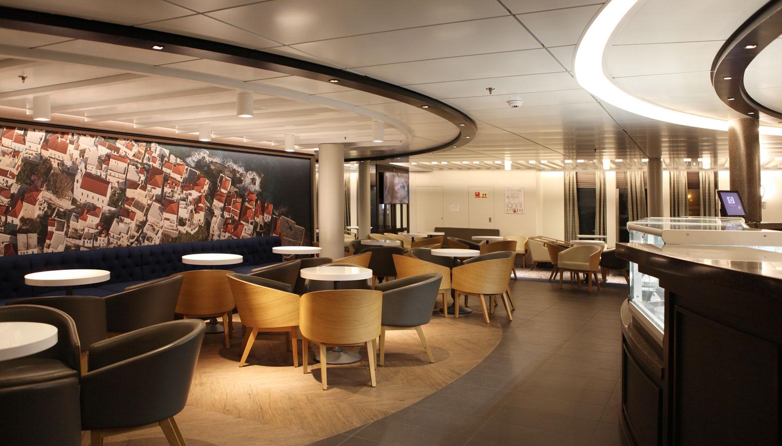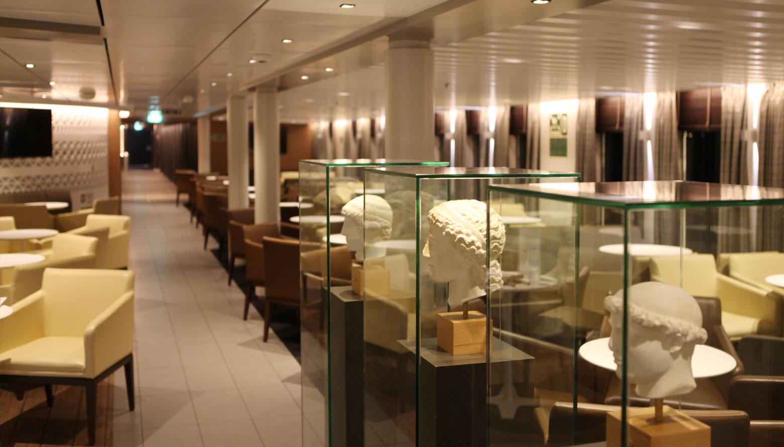 Η ιδέα ήταν να σχεδιάσουμε ένα πλοίο με έντονη την παρουσία των νησιών που επισκέπτεται. Έτσι σχεδιάσαμε το Mykonos Lounge κάτω από μια μεγάλη “ψάθινη” οροφή, ανάμεσα σε “μπουκαμβίλιες’ και “ανεμόμυλους”, το Tinos Lounge με τους χαρακτηριστικούς “περιστεριώνες” και αναφορά στην μαρμαρογλυπτική τέχνη και φυσικά το Andros Lounge, γενέτειρα των πελατών μας, με τα αντίστοιχα μοτίβα του νησιού.