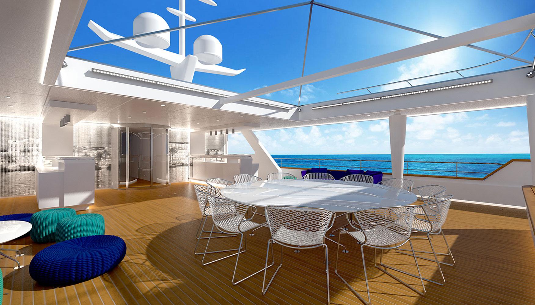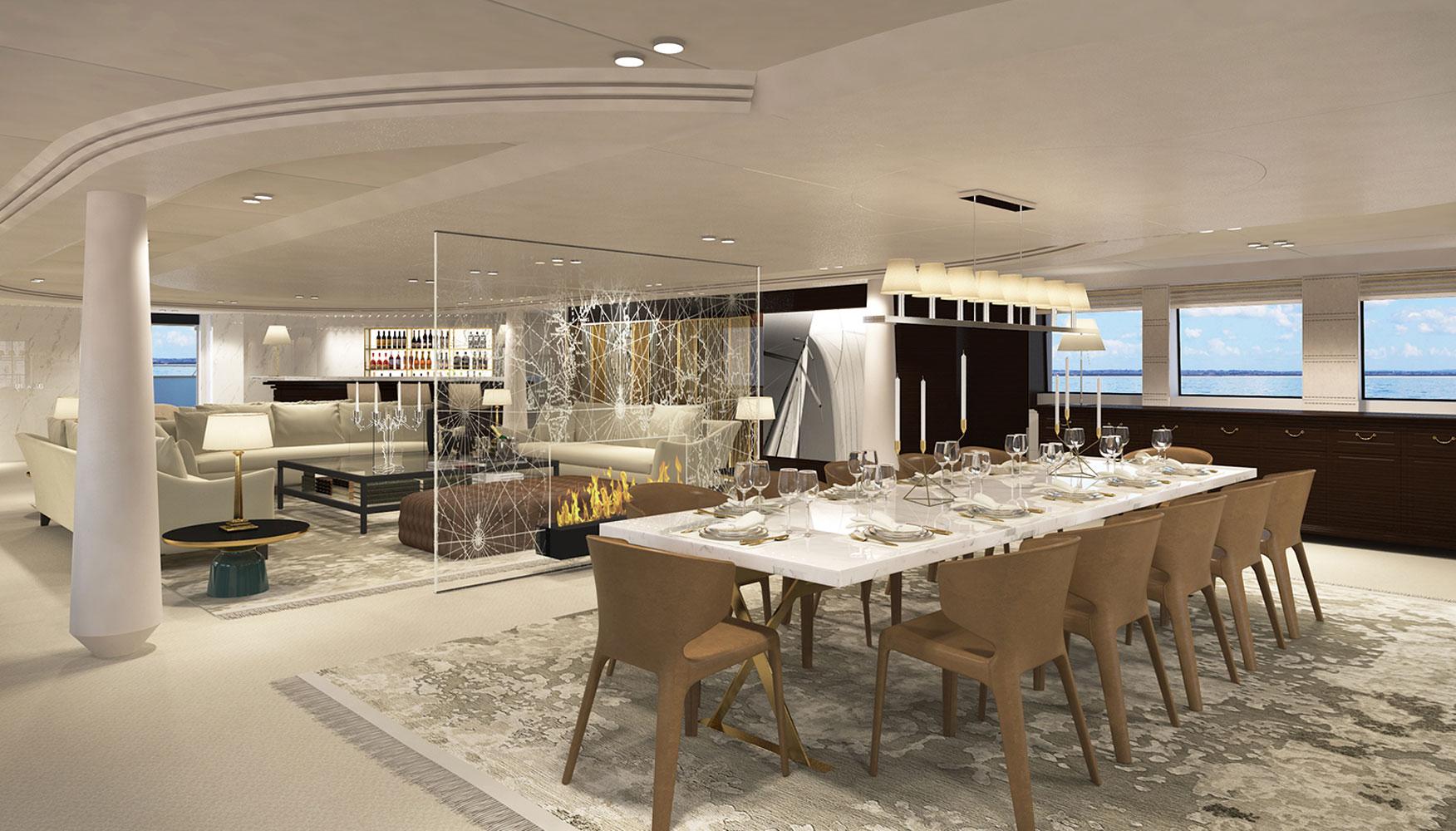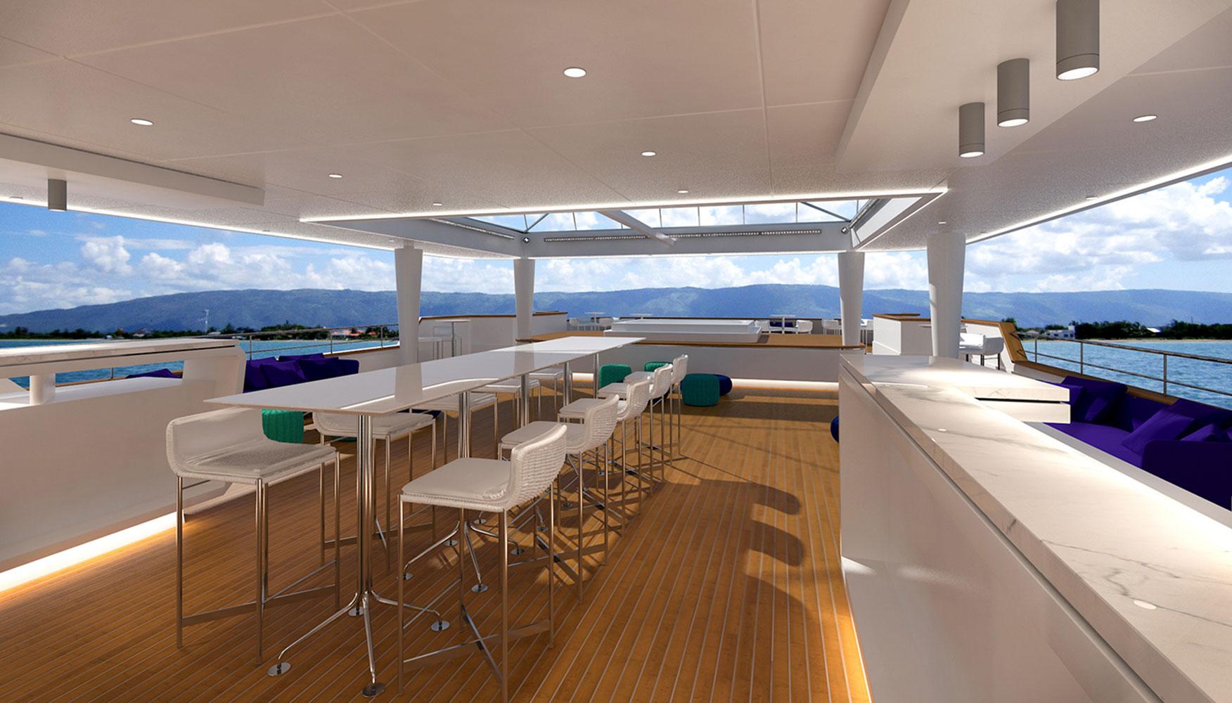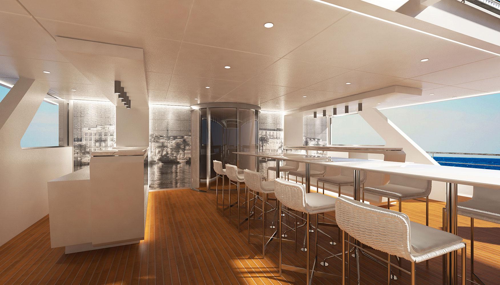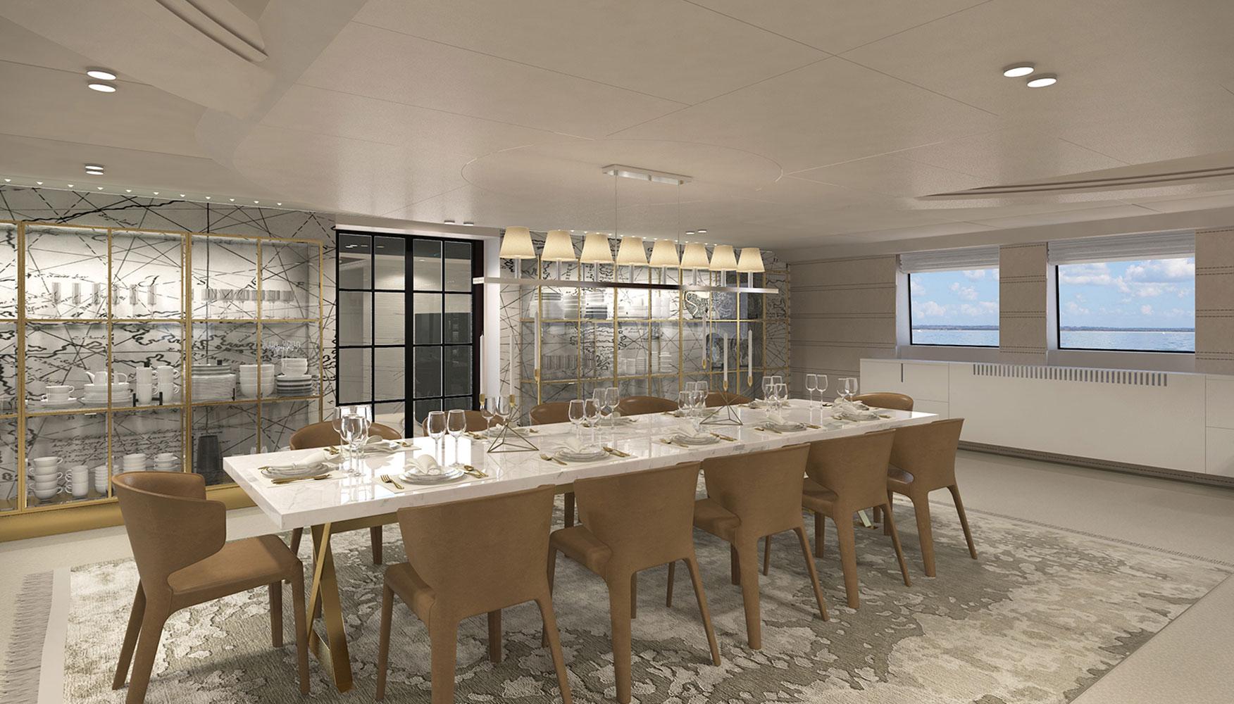 To 2016 μας ζητήθηκε να επανασχεδιάσουμε το mega-yacht Κatina για το ναυπηγείο Brodosplit, στο Split της Κροατίας. Το Μ/Υ Katina είναι ένα mega-yacht 60 μέτρων προς ενοικίαση, που φιλοξενεί μέχρι 12 καλεσμένους, με πλήρωμα 15 ατόμων ώστε να εξασφαλιστεί μια πολυτελής εμπειρία. Μας ζητήθηκε να ενσωματώσουμε την αισθητική μας μέσα σε πολύ σύντομο χρονικό διάστημα ώστε να δοθούν «ενέσεις» πολυτέλειας και ζεστασιάς σε ένα ήδη προχωρημένο εσωτερικό καθώς και να μελετήσουμε σενάρια “party” φωτισμού για τα εξωτερικά decks.