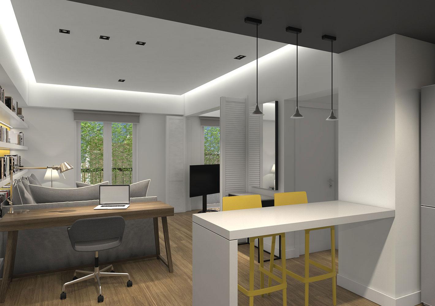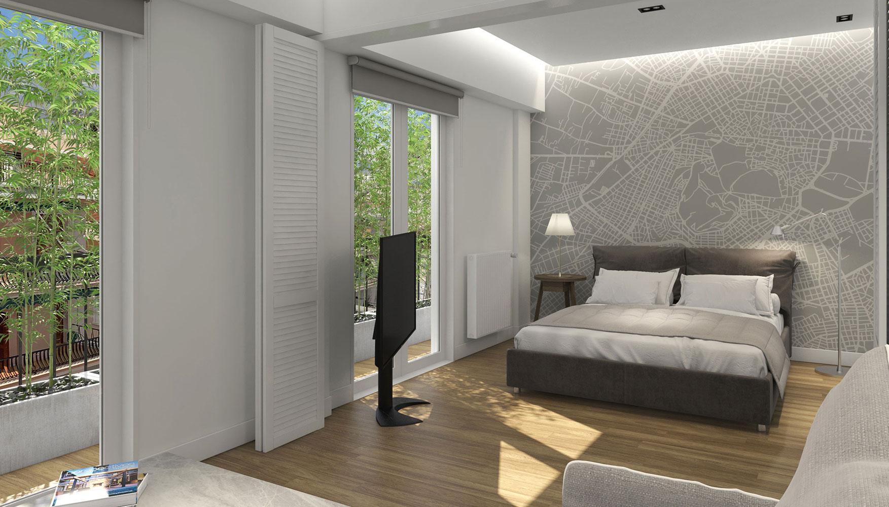 The owner of this small Athenian apartment, a contractor who is also a good friend, commissioned its conversion to an Airbnb guesthouse. We worked on this proposal parallel to a larger apartment conversion for the same owner. For this apartment as well, which is targeted to young guests, the decision-making process was made very easy due to the owner being the contractor for the project as well.