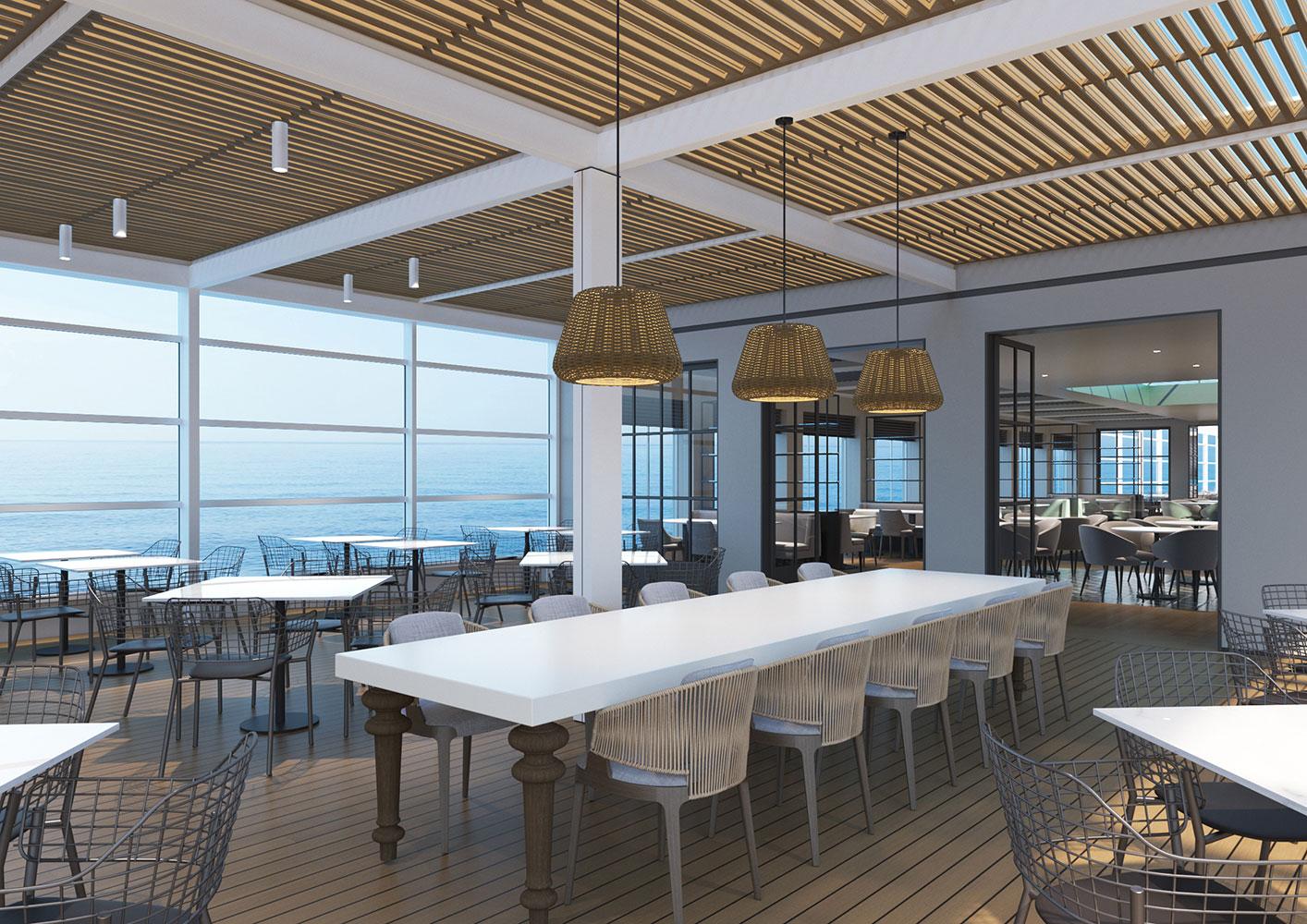 This includes a two-level, luxurious a-la carte restaurant, a large bar outdoor bar, a swimming pool and many lounge areas, protected from the wind and rain.