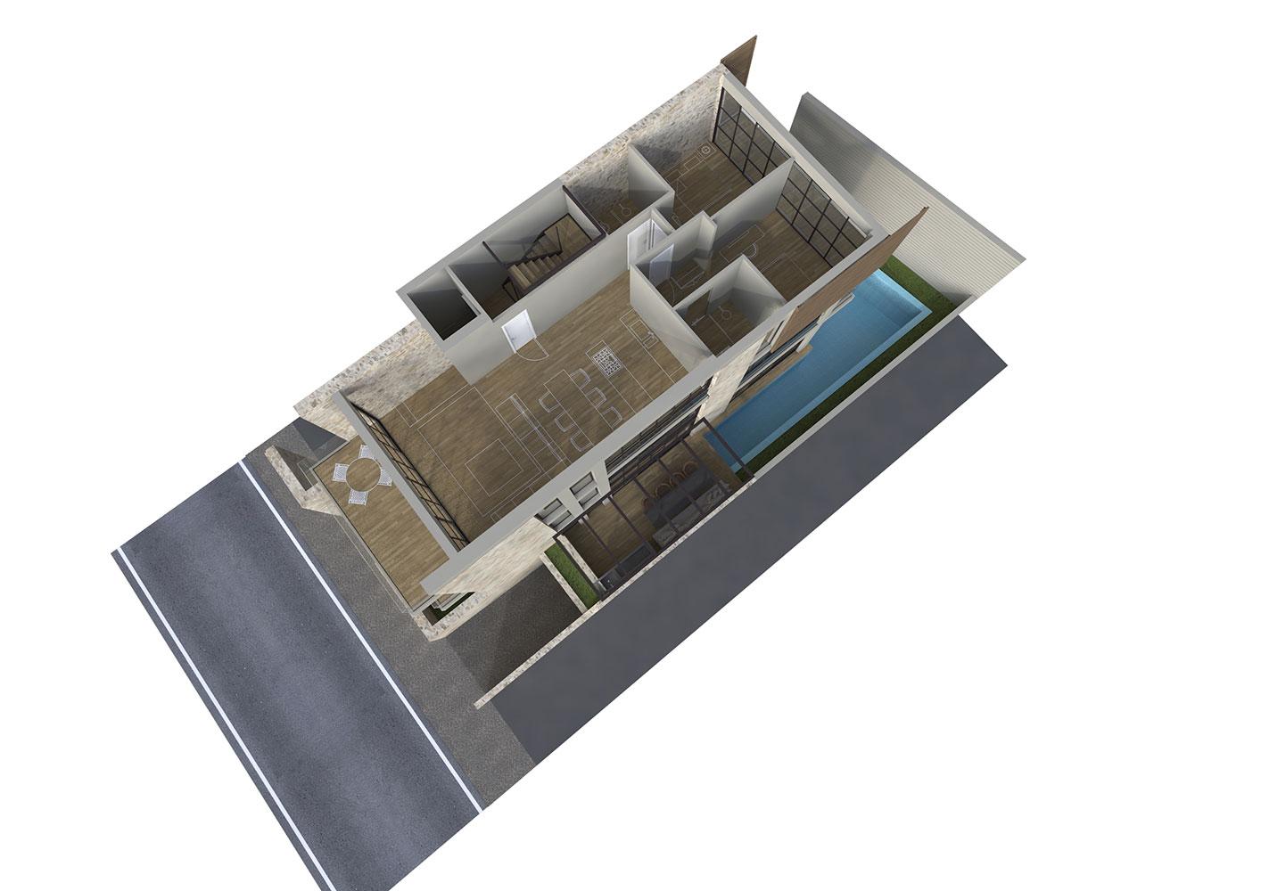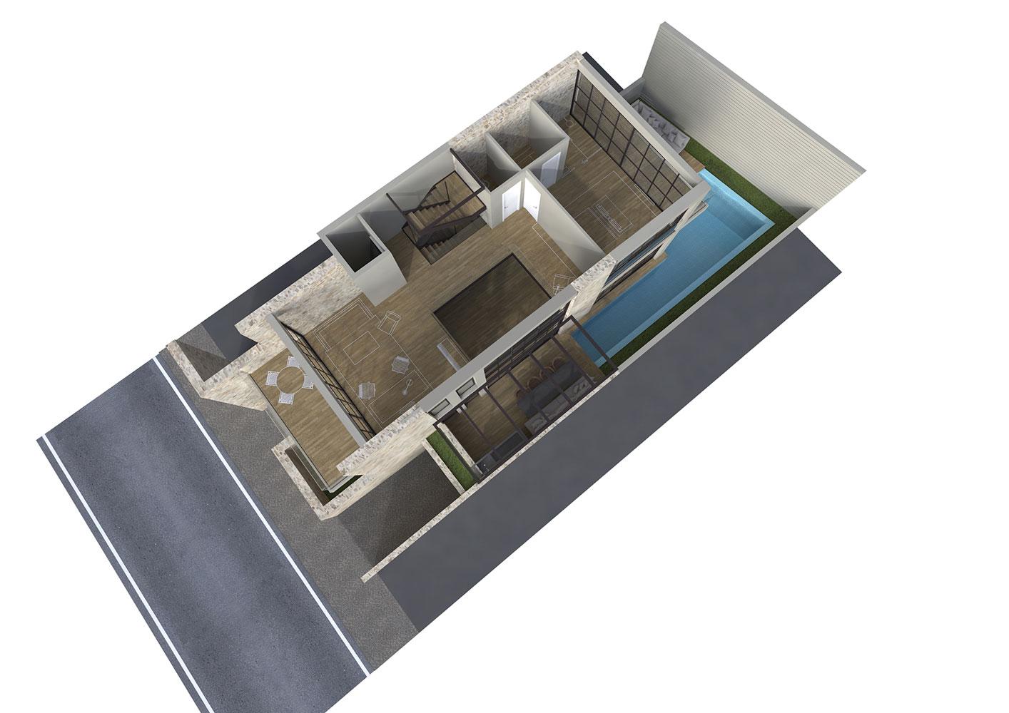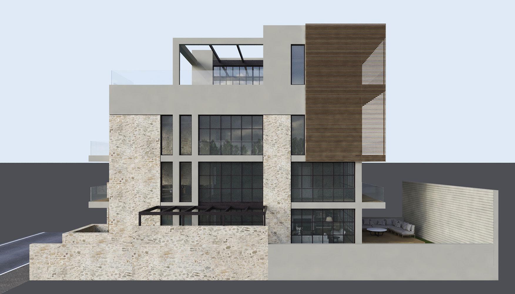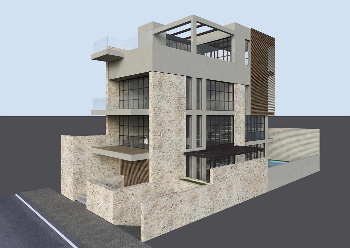 O Kύπριος ιδιοκτήτης επικοινώνησε μαζί μας αφού επισκεφθηκε το Blends, έργο μας στη Γλυφάδα, και μας ανέθεσε το σχεδιασμό μιας νέας κατοικίας στη Λεμεσό για εκείνον και το γιό του που θα είχε “την ίδια αίσθηση με το Blends”. To τεσσάρων επιπέδων κτίριο, είναι ένα ιδιαίτερο και απαιτητικό έργο, εξαιτίας του μικρού μεγέθους του οικοπέδου και του στενού του σχήματος σε συνδυασμό με τις πολλές διαφορετικές λειτουργίες.