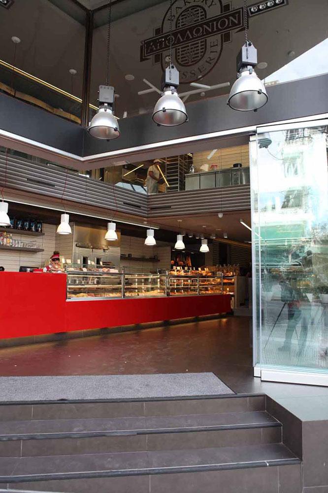 To 2012 αναλάβαμε το σχεδιασμό του γνωστού φούρνου Απολλώνιον στο κέντρο του Κολωνακίου, για λογαριασμό των τριών συνεταίρων του. Κληθήκαμε επίσης να επανασχεδιάσουμε την ταυτότητα και τη λειτουργία του φούρνου, σαν νέο πρότυπο, το οποίο και ακολουθήθηκε στα μελλοντικά καταστήματα.