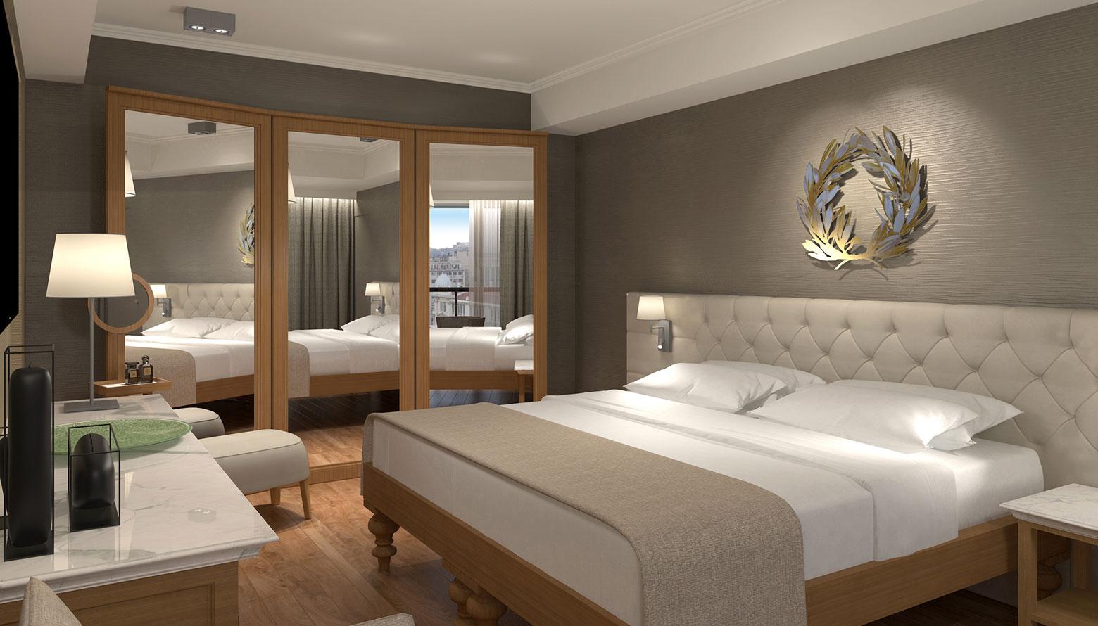 To 2016 συναντηθήκαμε με την Πρόεδρο του Διοικητικού Συμβουλίου του ξενοδοχείου Τιτάνια, κ. Ειρήνη Μαλάμου και την ομάδα της. Μας κέρδισε κατευθείαν με την αύρα και τον τρόπο της! Πολύ γρήγορα συμφωνήσαμε τη μετασκευή του Olive Garden, του roof garden εστιατορίου του ξενοδοχείου. Στην συνέχεια μας ανέθεσε το σχεδιασμό για την ανακαίνιση 130 δωματίων και 6 executive σουιτών του ξενοδοχείου.