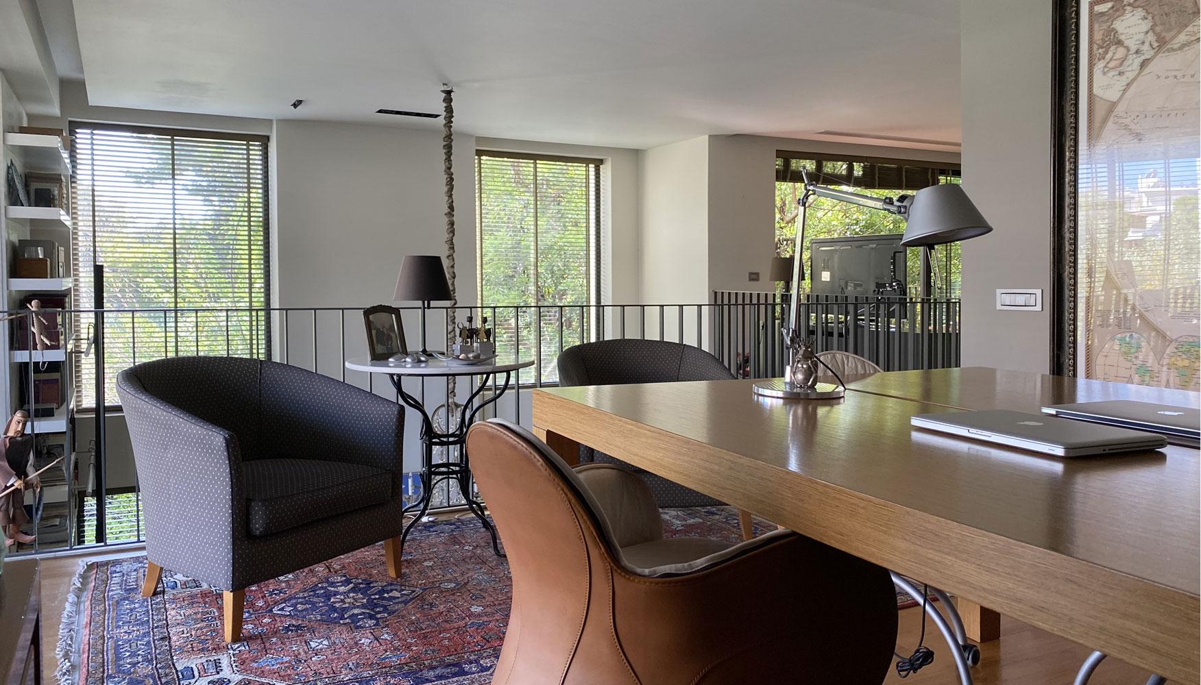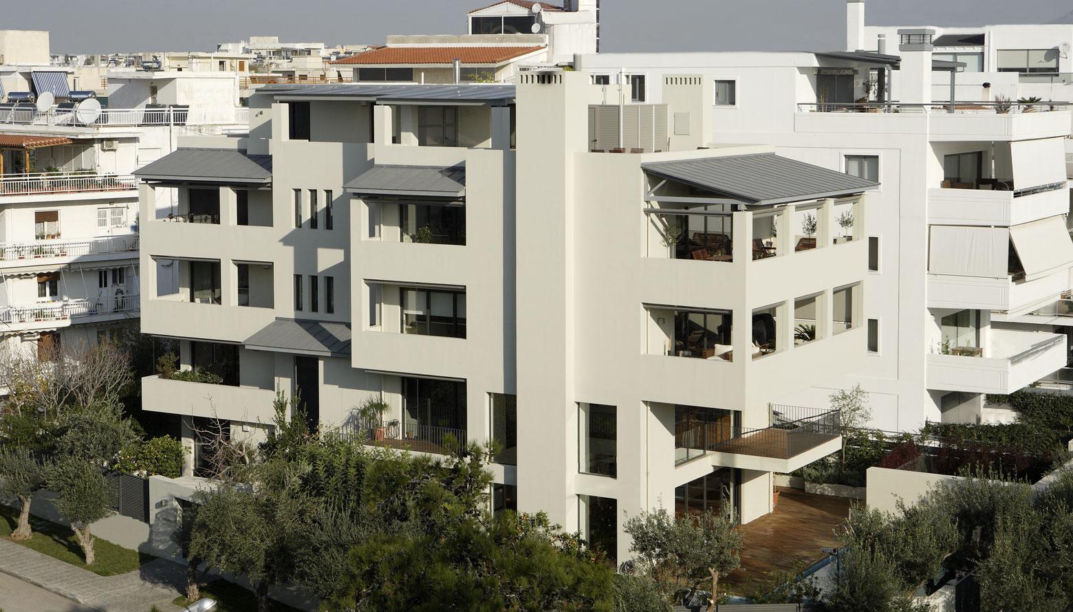Kατασκευάσαμε το κτίριο το 2007 στη Γλυφάδα. Μέσα σε έναν κατάφυτο κήπο, το κτίριο αποτελείται από μια διώροφη κατοικία, δυο οροφοδιαμερίσματα, δυο ξενώνες στο δώμα και ένα διώροφο αρχιτεκτονικό γραφείο, το γραφείο μας.