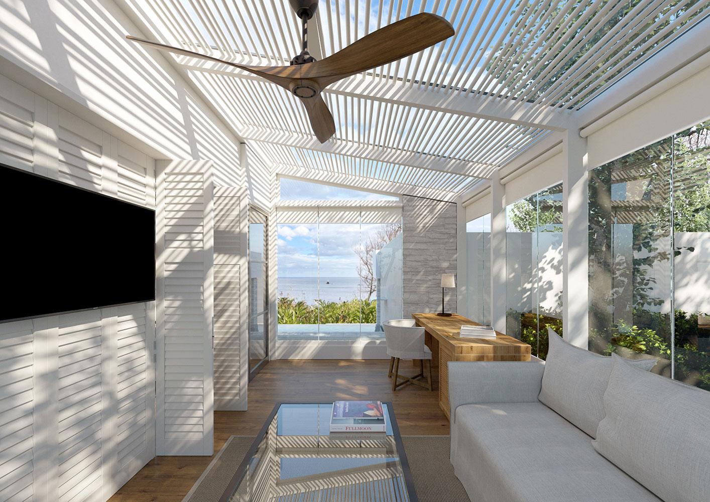 Η κεντρική ιδέα των bungalows είναι να αποκτήσουν μεγάλες ξύλινες βεράντες, με ιδιωτικές πισίνες και γνώμονα τη μέγιστη εκμετάλλευση της υπέροχης, ανεμπόδιστης θέας στη θάλασσα.
