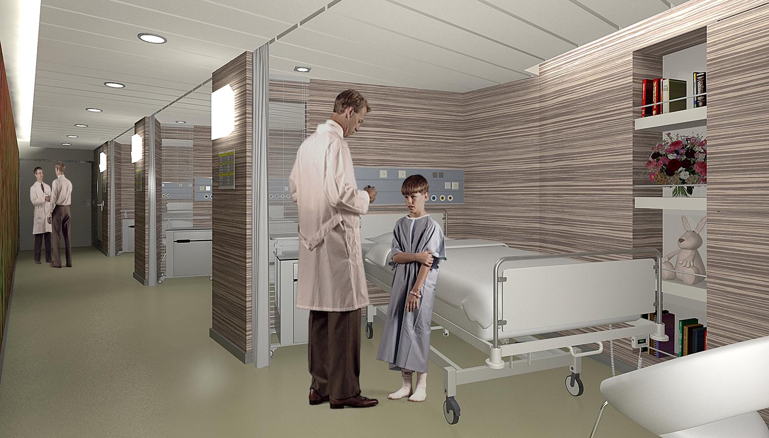 Ένα ιδιαίτερο και πολύ ενδιαφέρον project: το αίτημα της εταιρείας που μας ανέθεσε το συγκεκριμένο project, ήταν η μετατροπή ενός υφιστάμενου ferry boat σε πλωτό νοσοκομείο, με όλο τον απαραίτητo εξοπλισμό και τη δυναμική μιας μονάδας η οποία θα πλησίαζε εμπόλεμες περιοχές και θα παρείχε πρώτες βοήθειες και ανάλογη νοσηλεία.