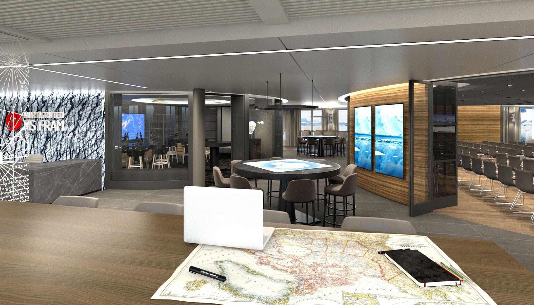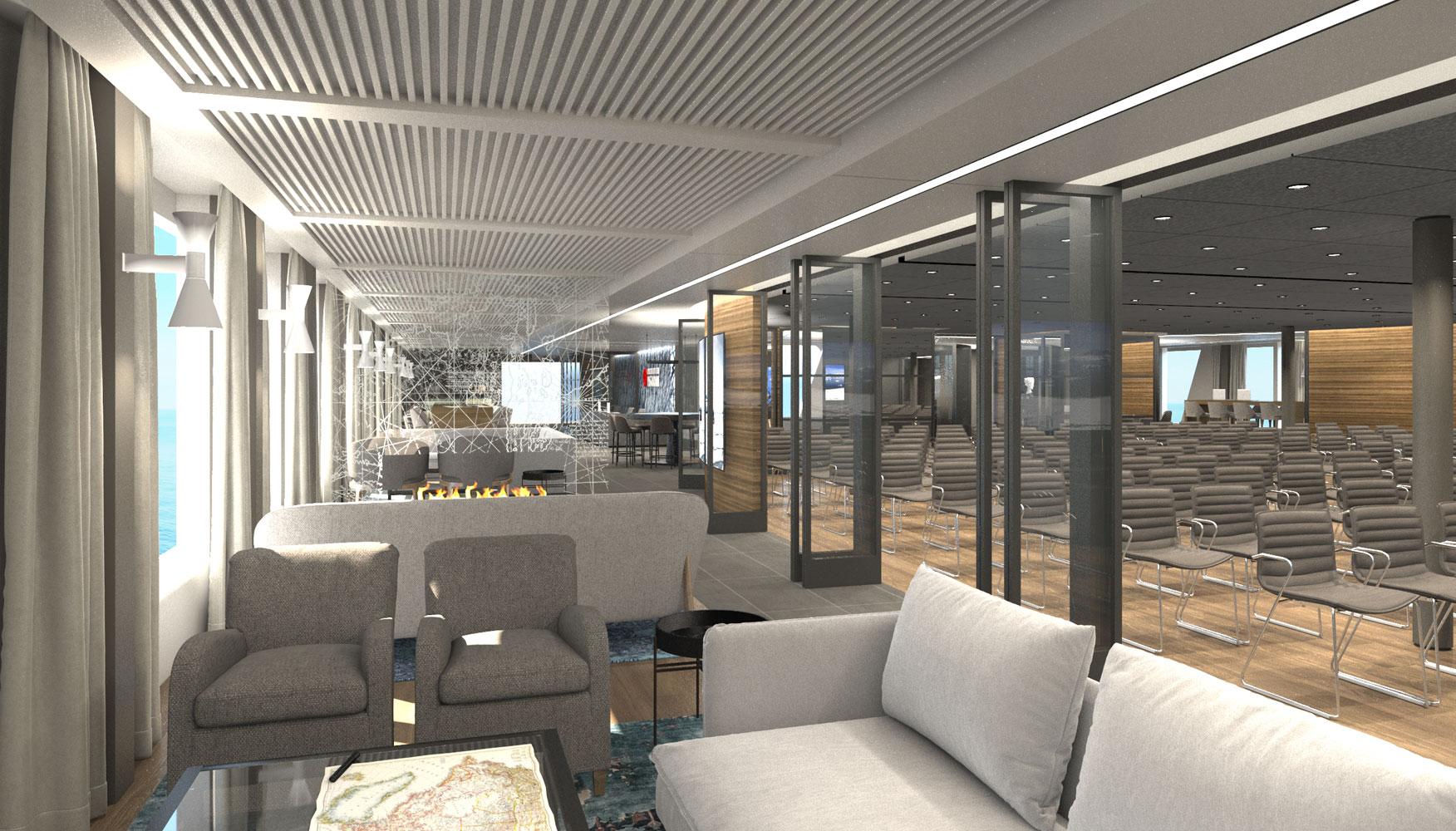 Παράλληλα ζητήθηκε να σχεδιάσουμε χώρους για ενημερωτικά σεμινάρια σχετικά με τις εκδρομές που διοργανώνονται και εργαστήρια στα οποία οι επιβάτες-εξερευνητές θα μελετούσαν τα ευρήματά από τις εκδρομές τους. Δόθηκε μεγάλη προσοχή ώστε οι διατάξεις των χώρων να εκμεταλλεύονται στο έπακρο την υπέροχη θέα του πολικού τοπίου.