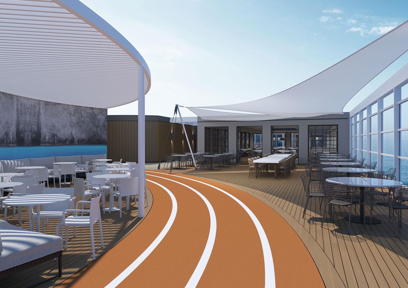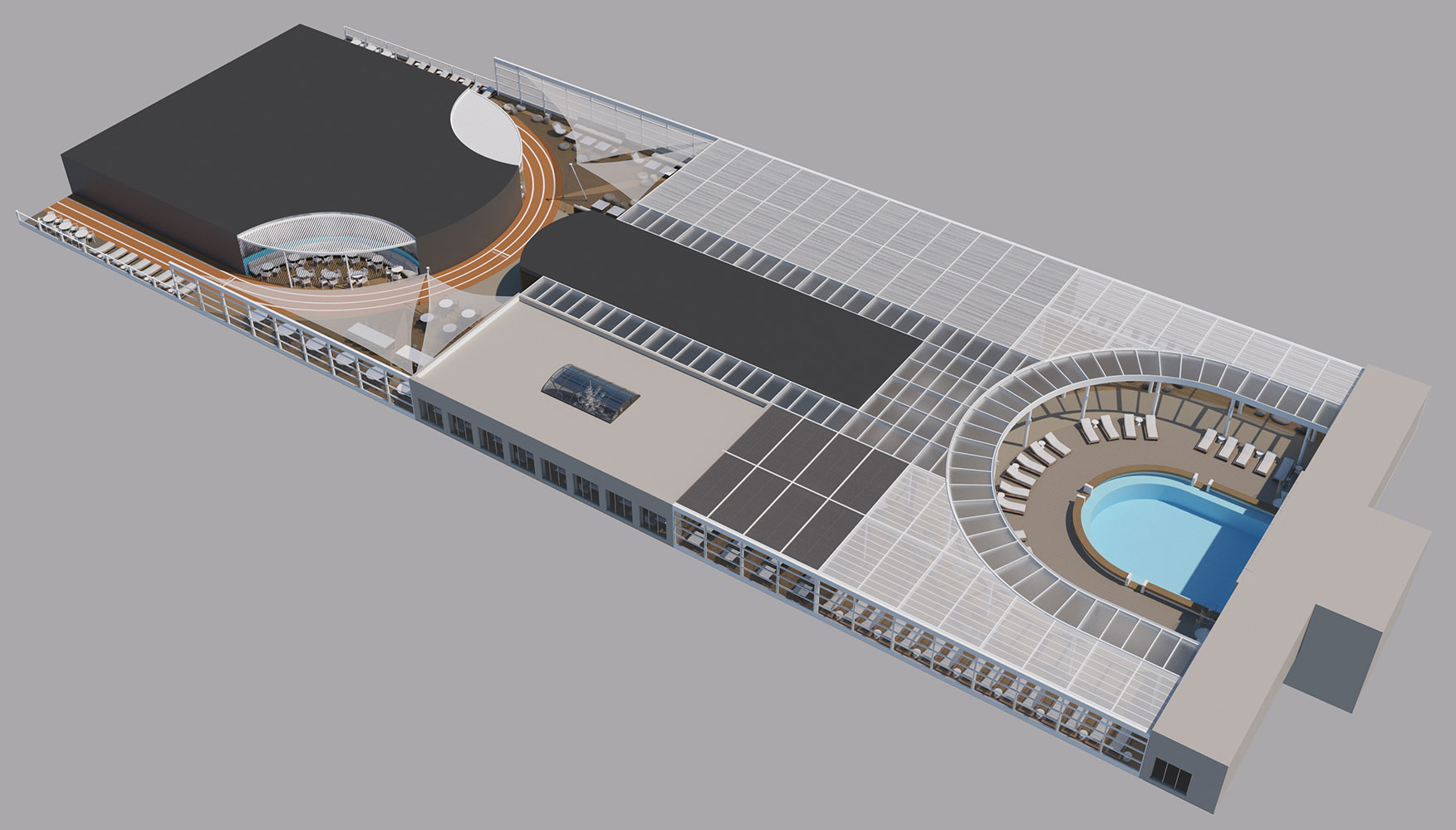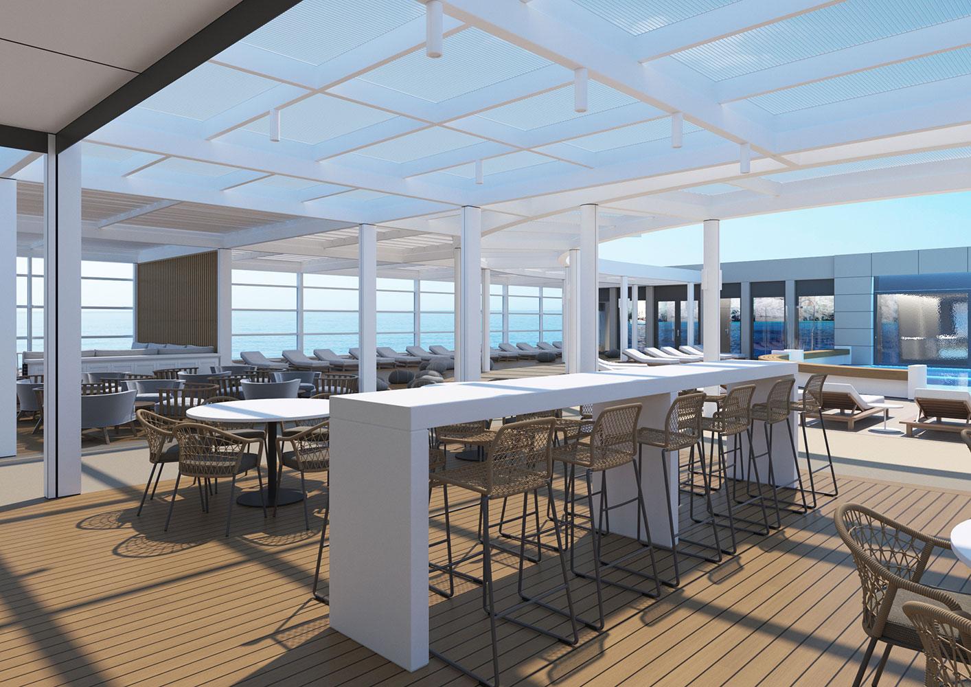 Σε αυτή τη νέα μας συνεργασία, η πλοιοκτήτρια εταιρία μας ανέθεσε τη διαμόρφωση του τελευταίου deck του ολοκαίνουργιου και πρωτοποριακού της πλοίου, με πολλούς υπαίθριους χώρους.
