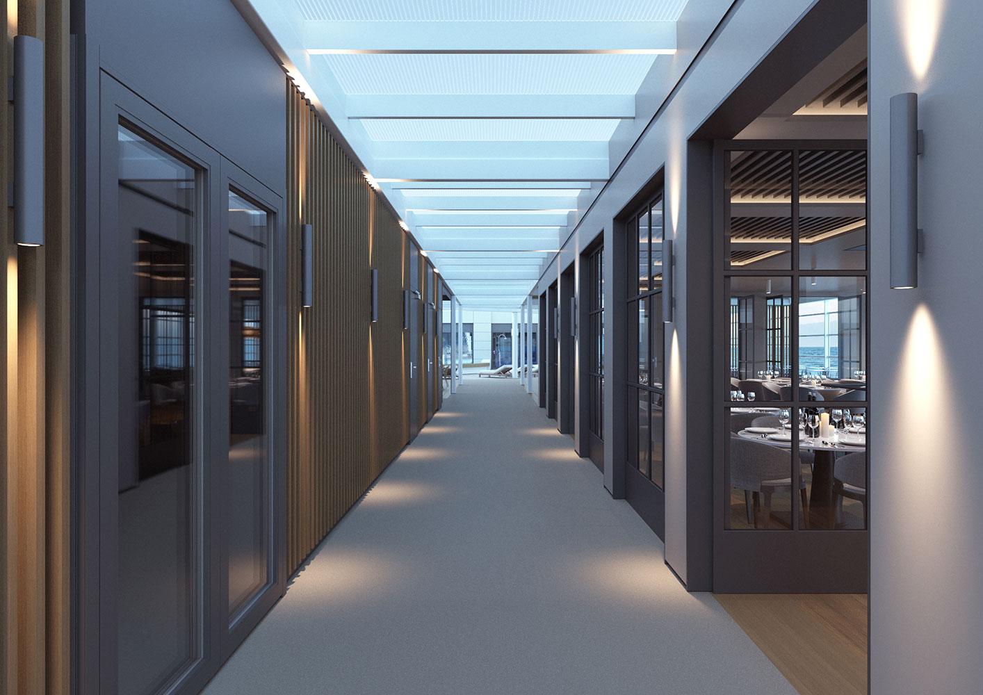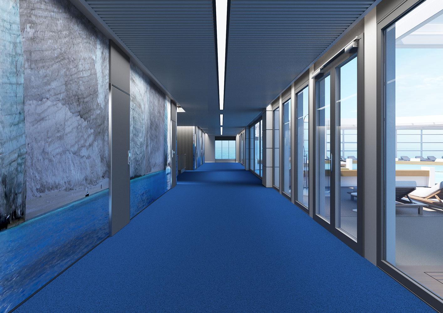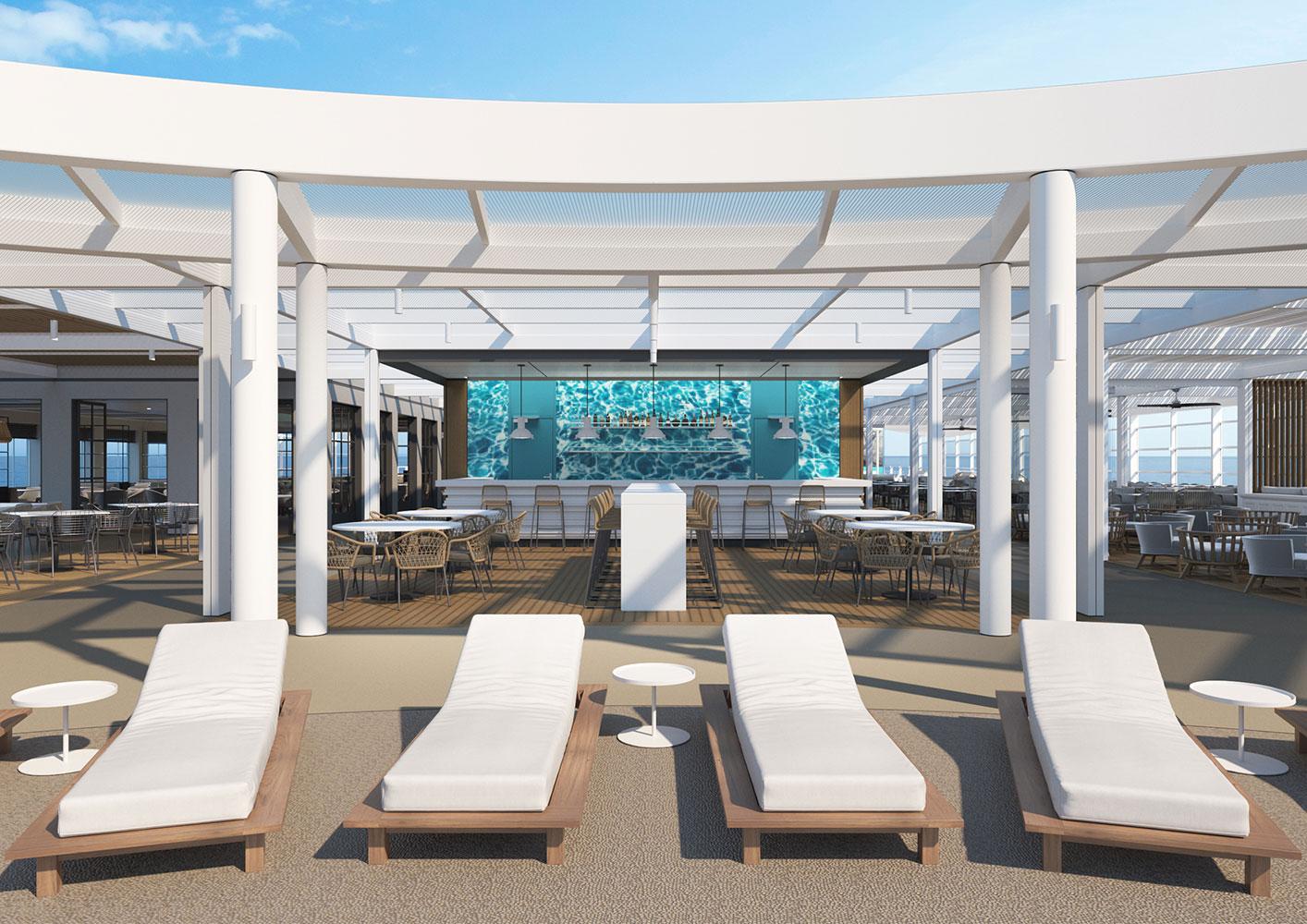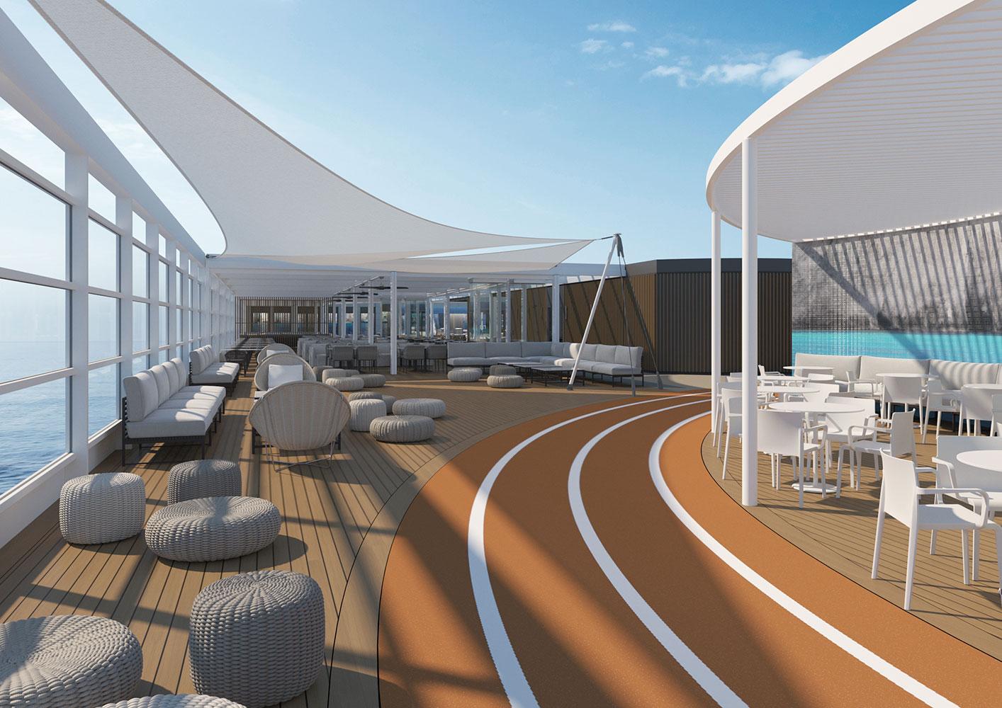 Σε αυτή τη νέα μας συνεργασία, η πλοιοκτήτρια εταιρία μας ανέθεσε τη διαμόρφωση του τελευταίου deck του ολοκαίνουργιου και πρωτοποριακού της πλοίου, με πολλούς υπαίθριους χώρους.